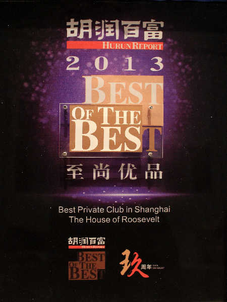 罗斯福会所赢得《俱乐部》最佳俱乐部奖及《胡润百富》2013年度至尚优品奖